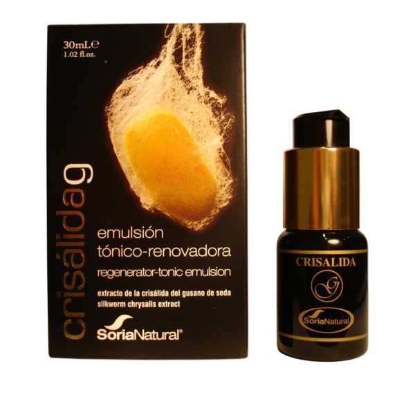 Soria Natural ha creado esta emulsión utilizando el más puro y efectivo activo natural de origen biológico: el extracto de crisálida de seda. Este ingrediente presenta cualidades reparadoras, regeneradoras y nutritivas de alto poder. Utilizada diariamente, Crisálida G Emulsión Tónico-Renovadora contribuye a desdibujar arrugas marcadas, al tiempo que previene la aparición prematura de líneas de expresión y nuevas arrugas. Aplicada sobre manchas de la piel, ayuda a difuminarlas. En estrías y cicatrices, el poder regenerador del extracto de crisálida mejora la textura de la piel, haciendo menos visibles estas imperfecciones.